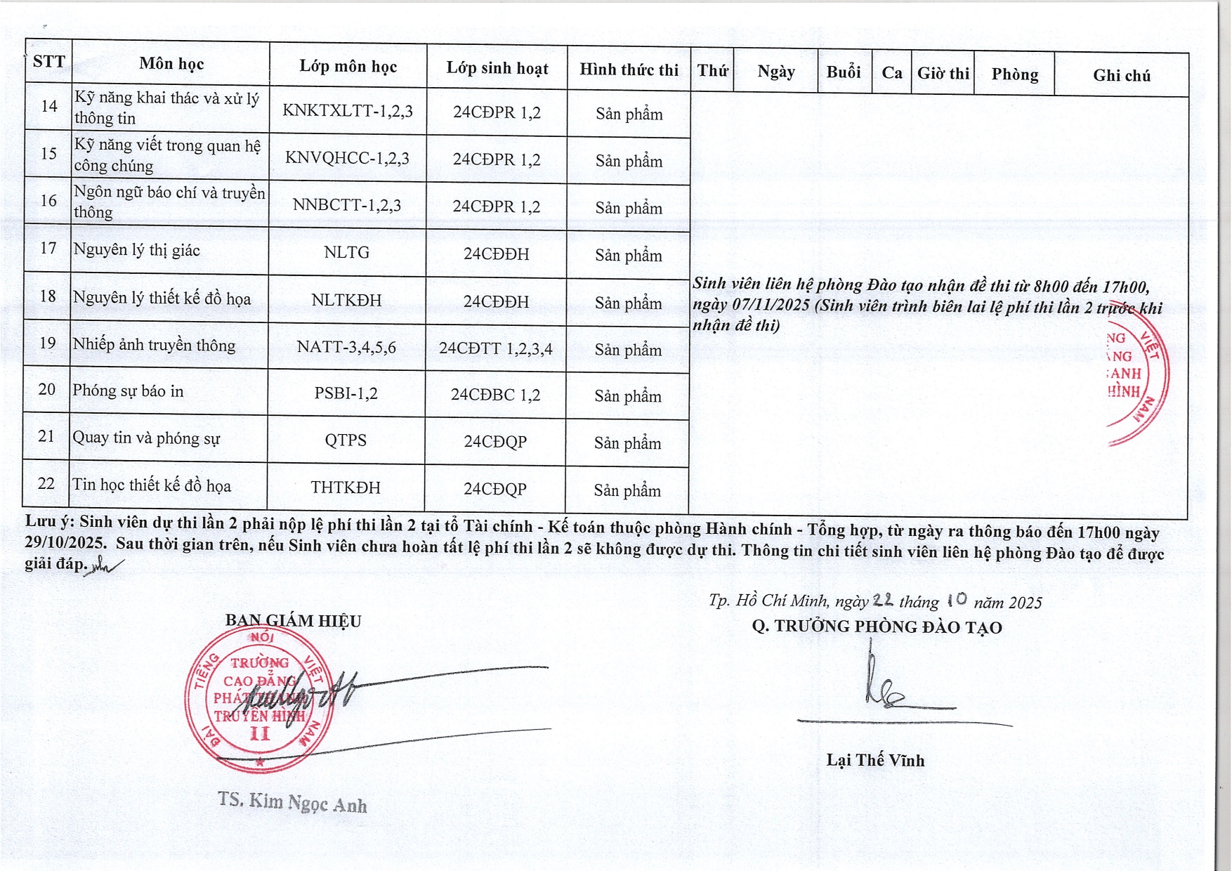 Lịch thi và danh sách dự thi học kỳ II, năm học 2024-2025 (Đợt 2)