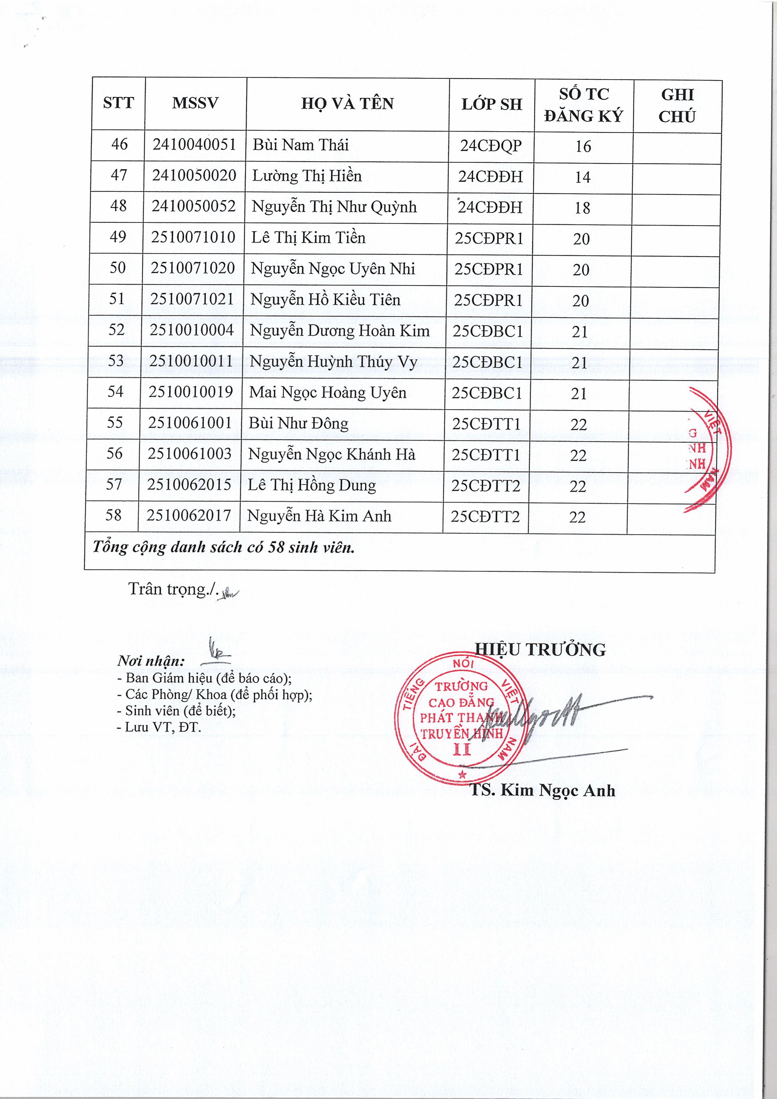 Thông báo về việc mở lớp bổ sung môn học học kỳ 1, năm học 2025-2026
