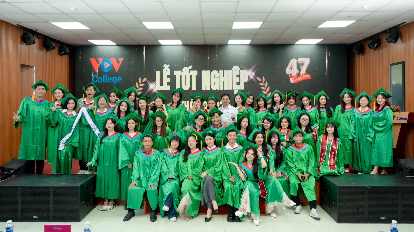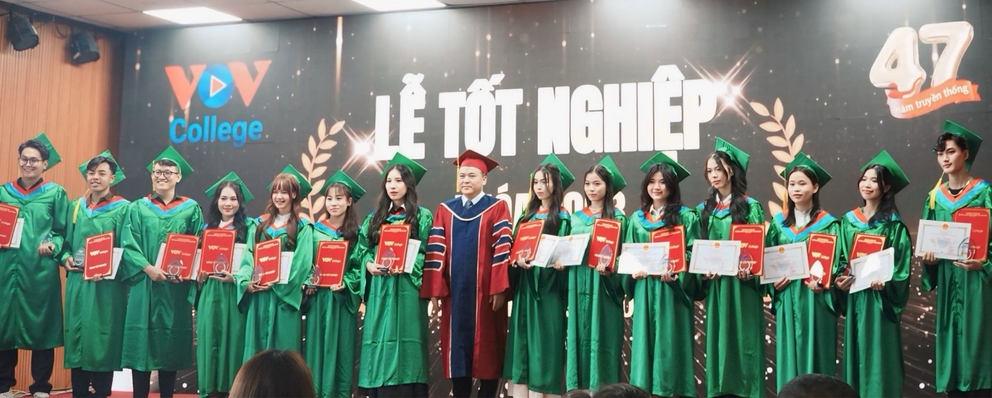 Nhà trường xin gửi lời chúc mừng chân thành nhất đến các tân cử nhân. Mong rằng với hành trang kiến thức, kỹ năng và ngọn lửa đam mê được vun đắp tại VOV College, các em sẽ trở thành những chuyên gia tài năng, bản lĩnh và thành công trên con đường sự nghiệp đã chọn.