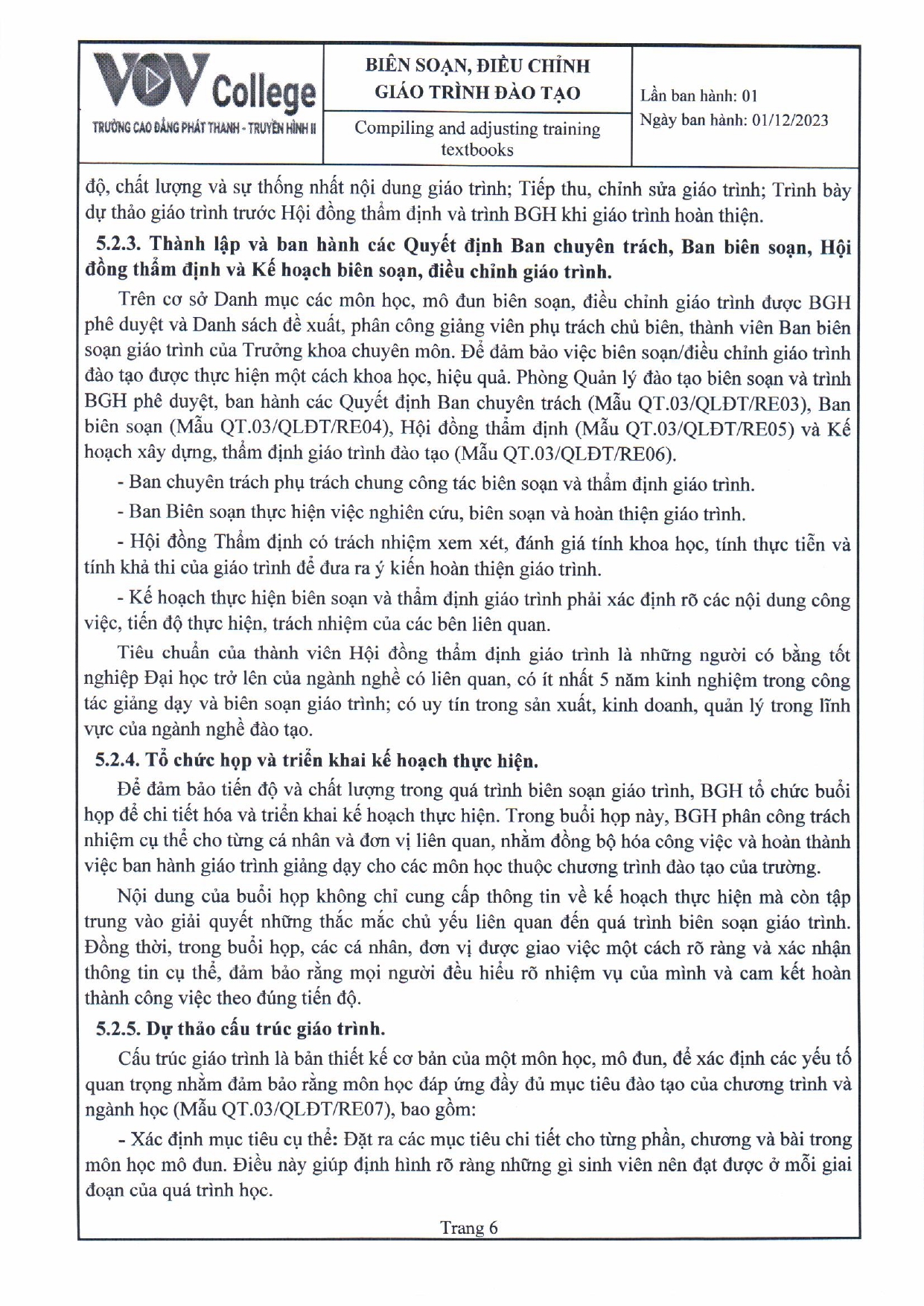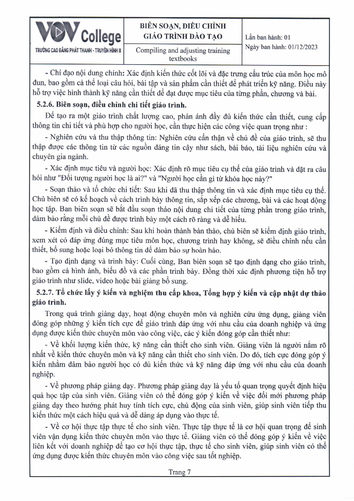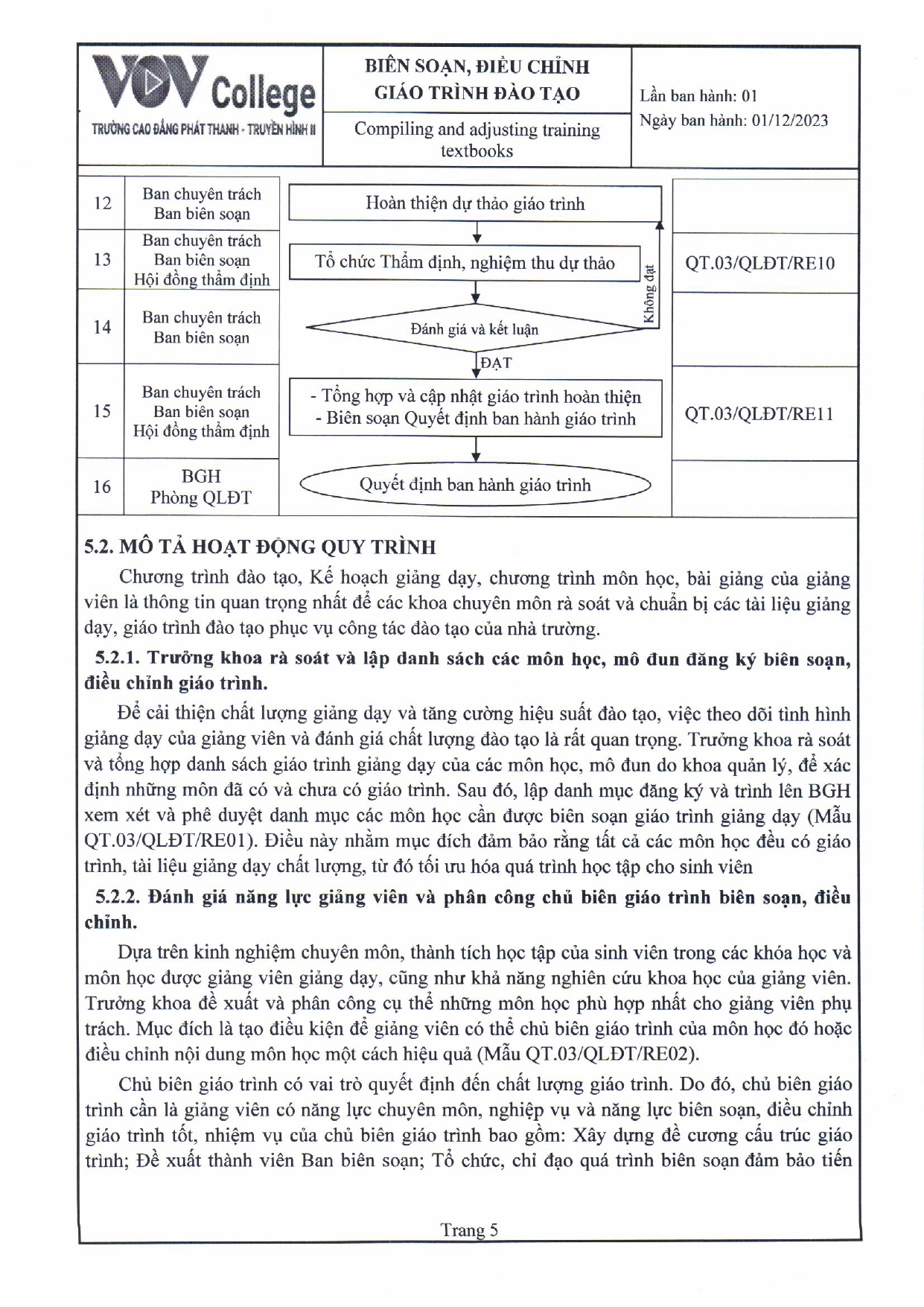 Quy trình biên soạn, điều chỉnh giáo trình đào tạo (Tải về)