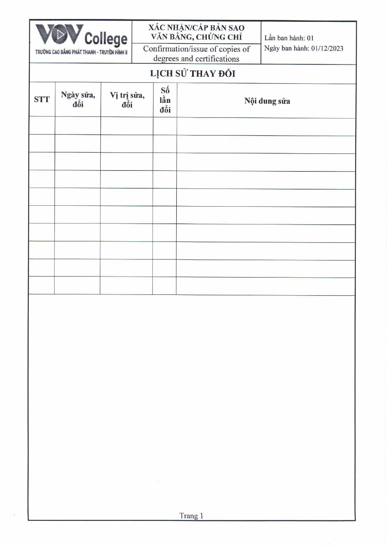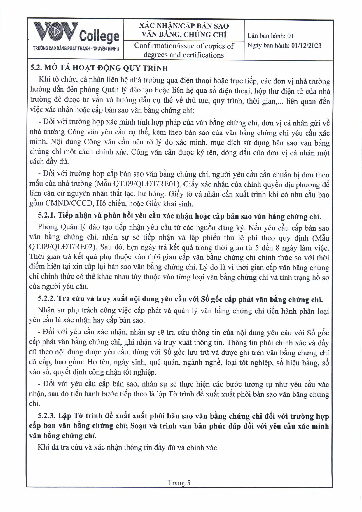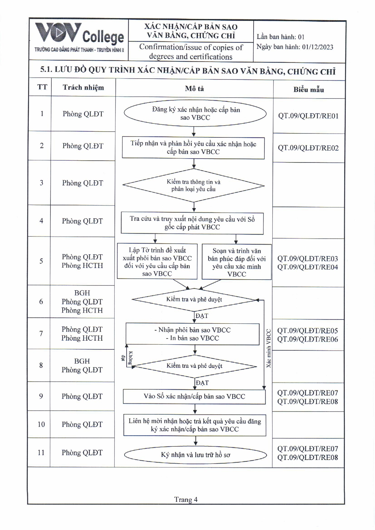 Quy trình xác nhận/ cấp bản sao văn bằng, chứng chỉ (Tải về)
